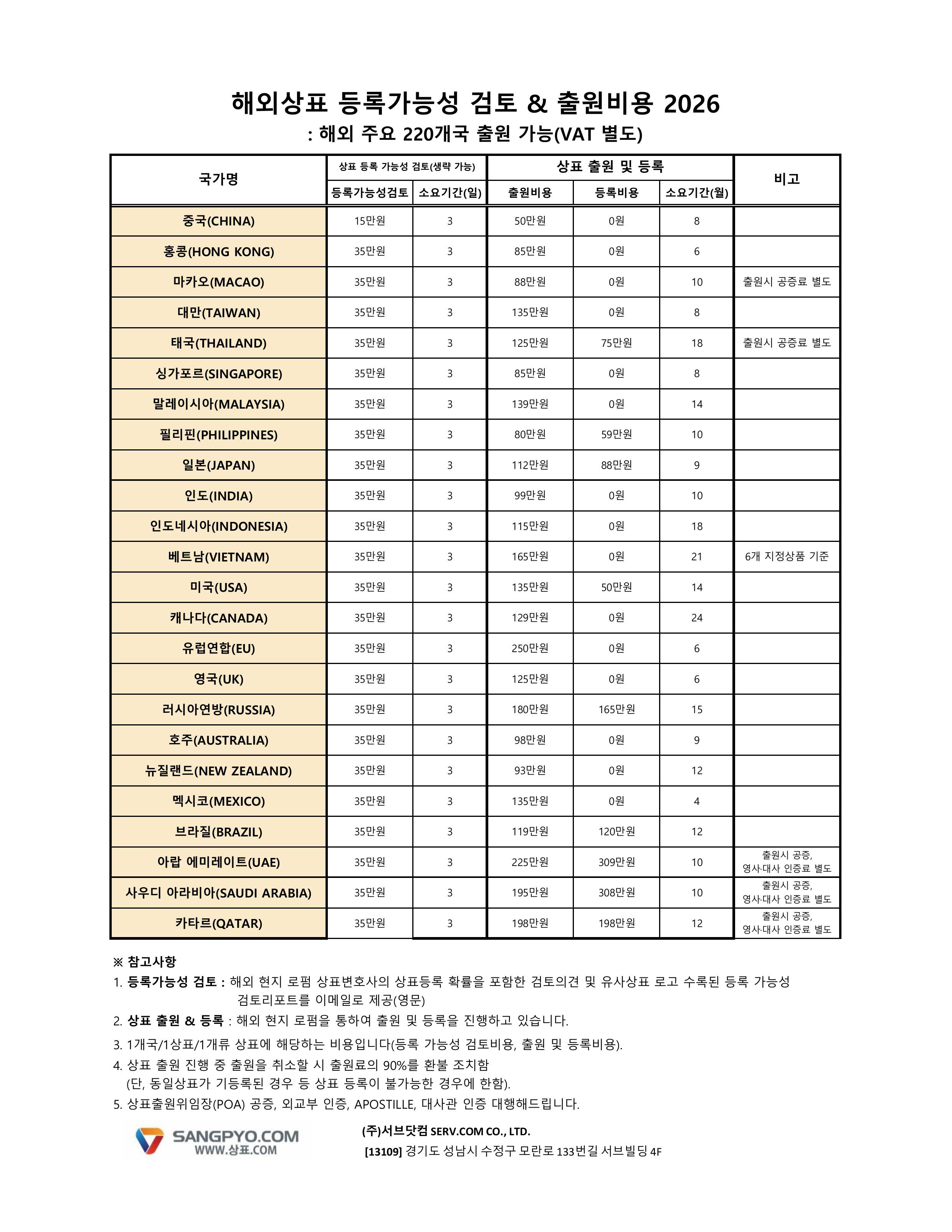 2026년 해외상표 등록가능성검토 및 출원&등록비용